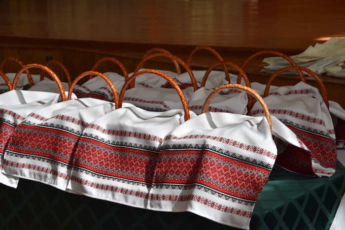 Після вітальних слів дітям та їх супроводжуючим вручили Великодні кошики, у які поклали паску, крашанки, ковбасу, сир, печене м'ясо, сік та солодощі.