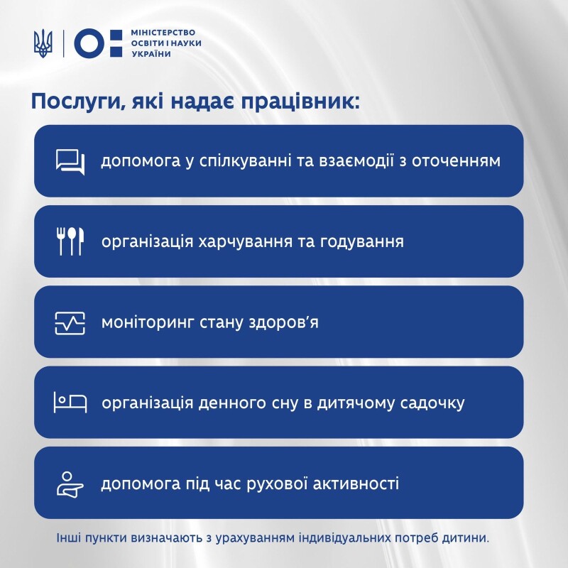 Важливо, що асистент не впливає на освітній процес і не надає освітніх послуг, а також не дає рекомендацій педагогам !!!!