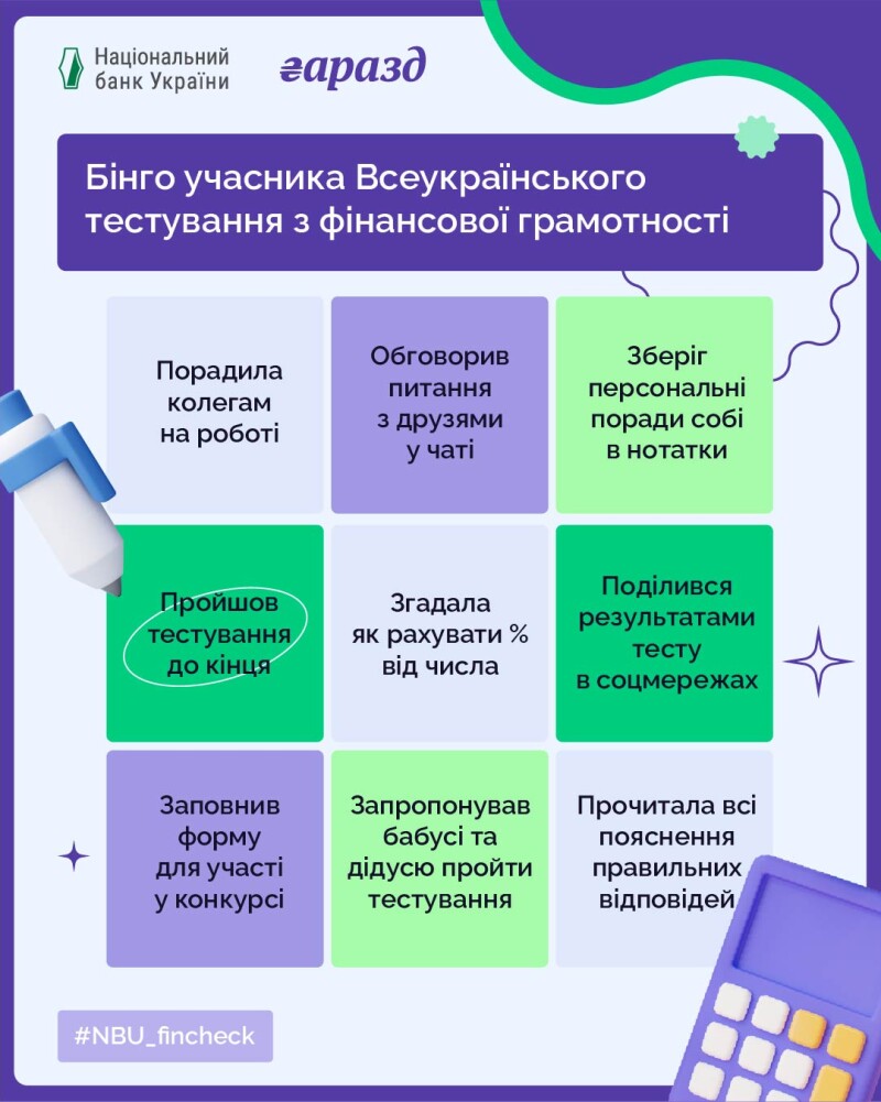 Долучайтеся до Всеукраїнського тестування з фінансової грамотності для дорослого населення