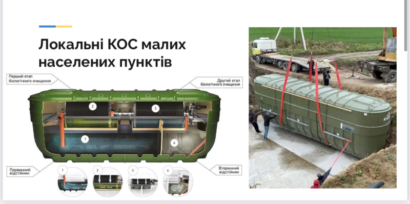 Ще один важливий напрям роботи — впровадження локальних очисних споруд (КОС) у малих населених пунктах.