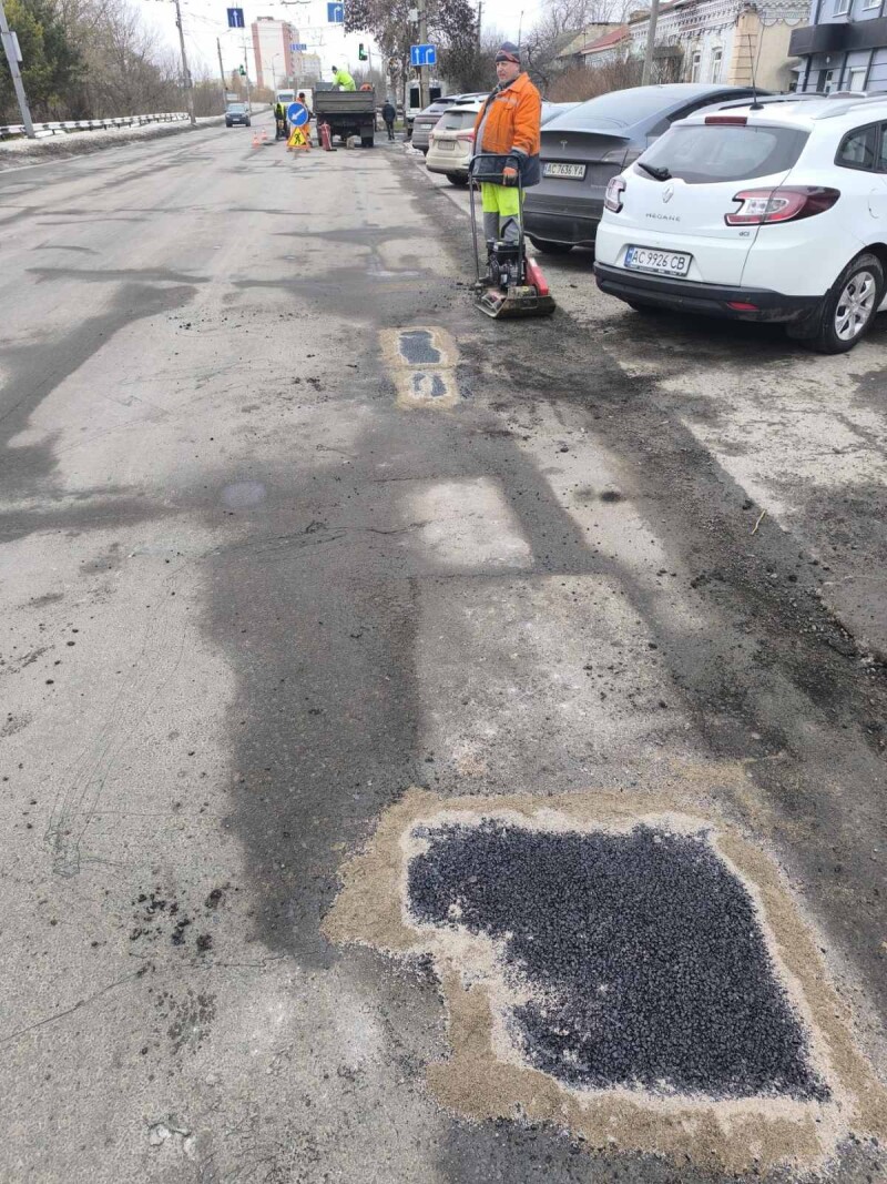 Ще один фронт робіт виконує ТзОВ «Луцькавтодор-Сервіс». Працівники підприємства ремонтують дорожнє покриття на вулиці Ковельській від спиртзаводу до вулиці Глушець, а також на вулицях Рівненській та Карпенка-Карого.