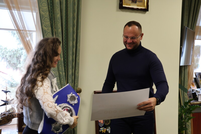 Він вручив чемпіонам грошові сертифікати за високі досягнення у спорті.