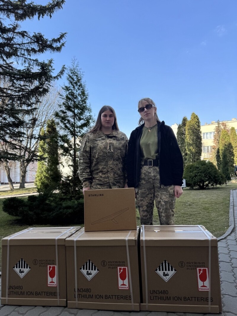 Три зарядні станції Oukitel та супутниковий модем Starlink Internet Satellite Mini передали захисникам військової частини А4784.