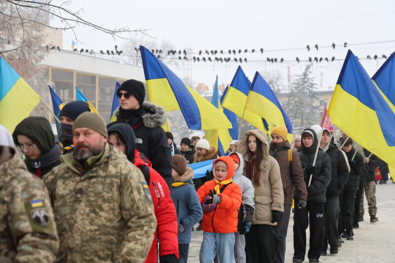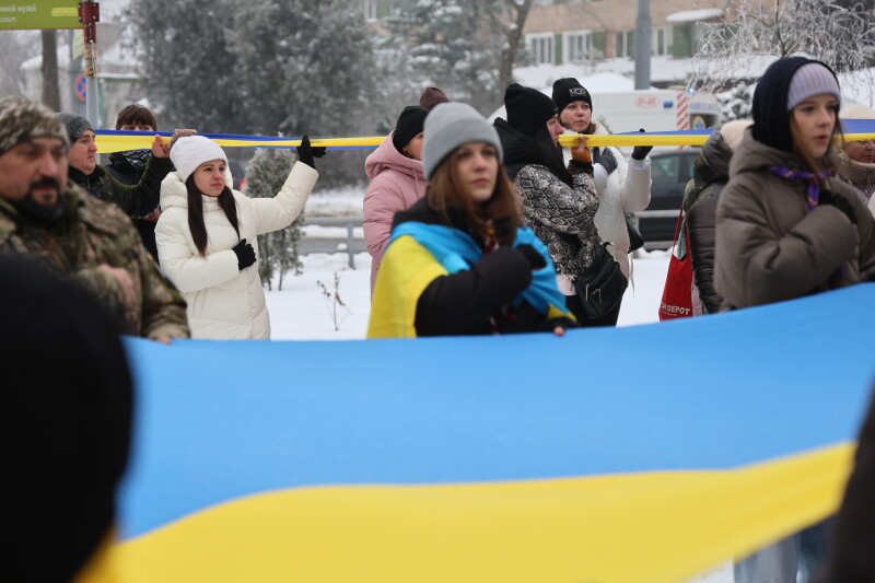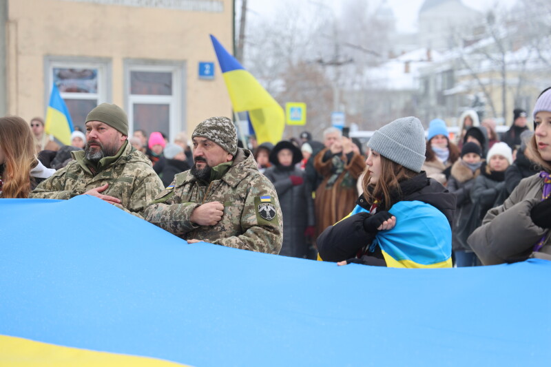 Лучани згуртувалися, щоб продемонструвати свою єдність та волю до боротьби під час повномасштабного вторгнення. На площі Злуки учасники акції виконали Державний Гімн України.