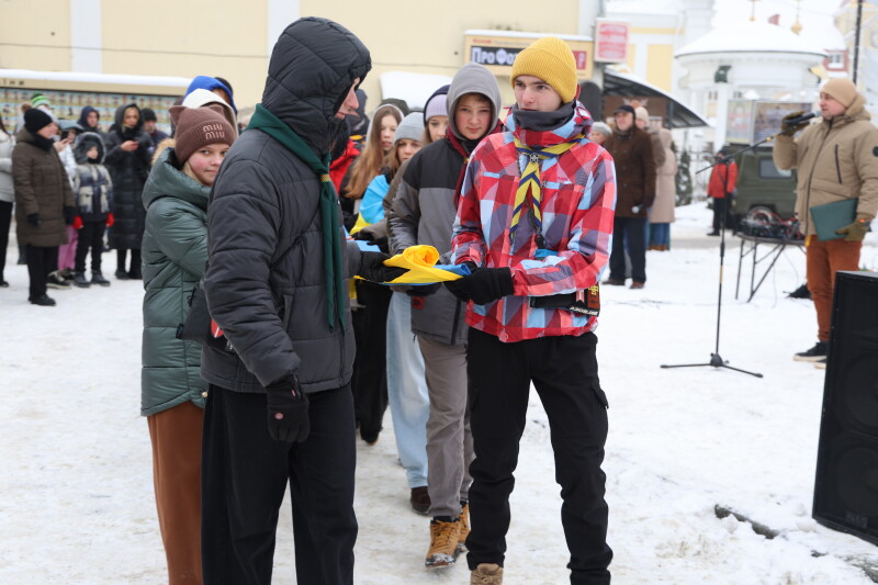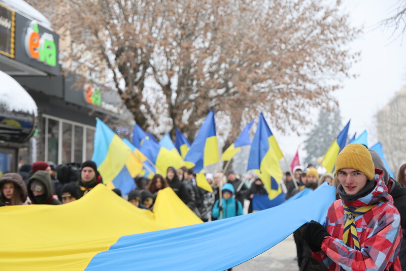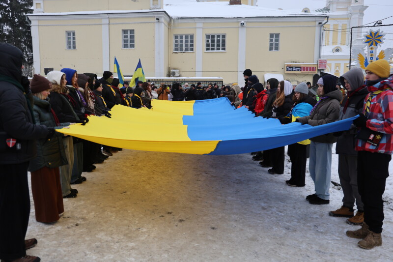 Лучани розгорнули 200-метровий прапор у День Соборності України