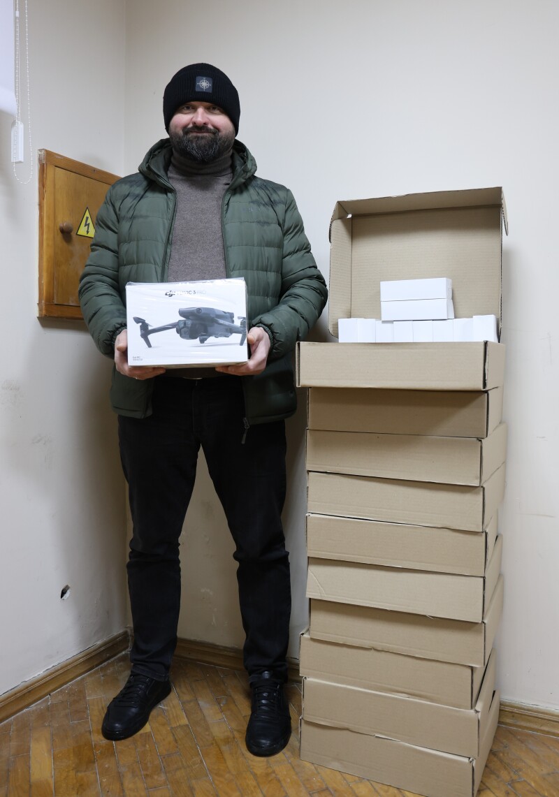 Так, для потреб військової частини А0409 передано два квадрокоптери DJI Mavic 3 PRO та супутниковий термінал Starlink.