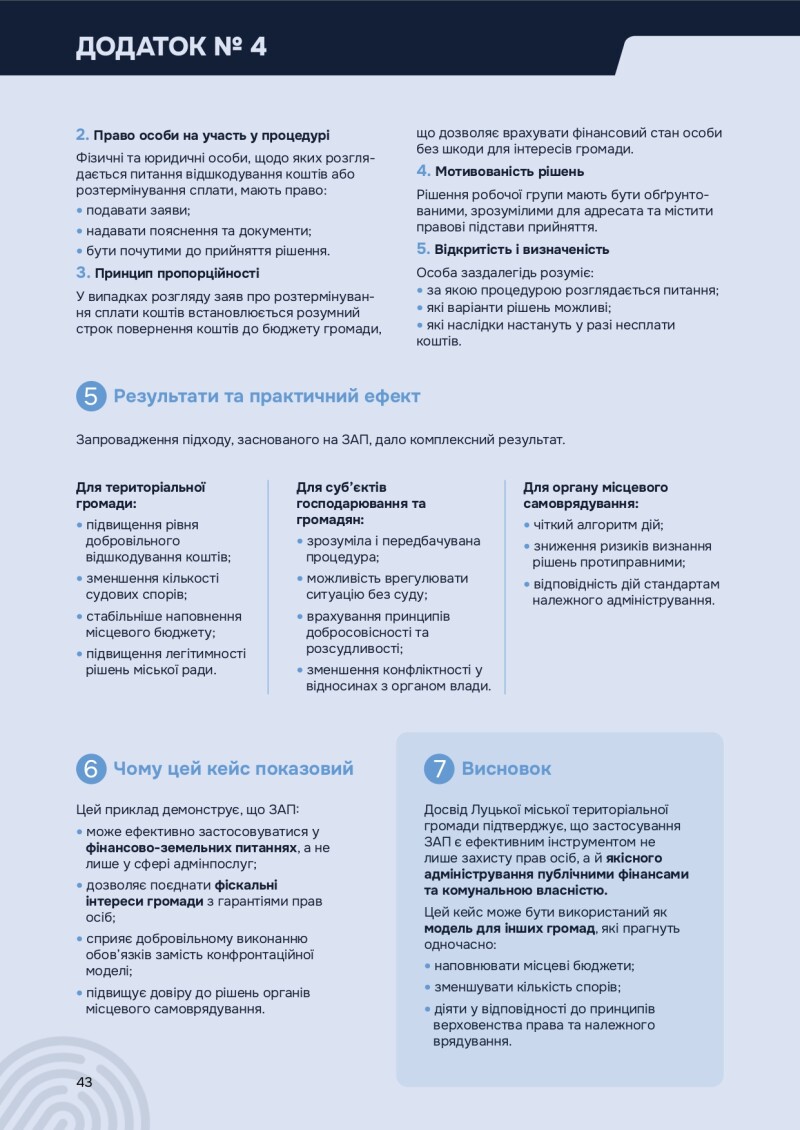 Як відзначило Міністерство юстиції України у звіті, досвід Луцької міської територіальної громади підтверджує, що застосування ЗАП є ефективним інструментом не лише захисту прав осіб, а і якісного адміністрування публічними фінансами та комунальною власністю.
