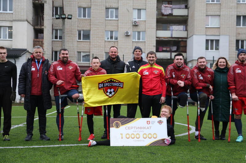 Сьогодні міський голова Ігор Поліщук відвідав святкове тренування луцької команди «Хрестоносці», у складі якої грають ветерани війни з ампутаціями кінцівок. Команда посіла друге місце в чемпіонаті України з ампфутболу, ставши срібним призером, і виборола право представляти Україну в Лізі Європи EAFF 2026. Щоб підтримати ветеранів міський голова вручив команді під час тренування від Луцької громади сертифікат на один мільйон гривень.