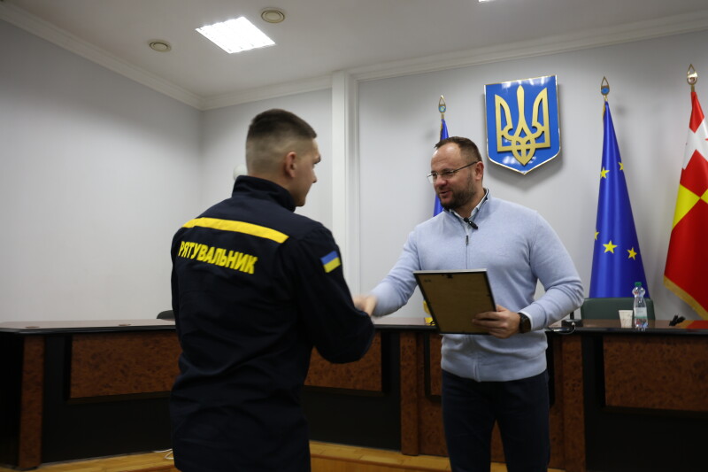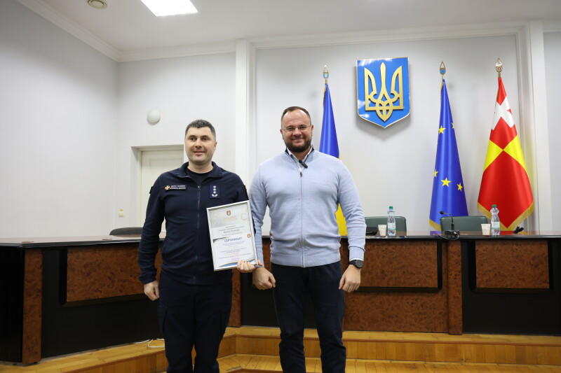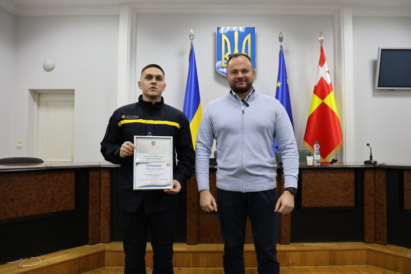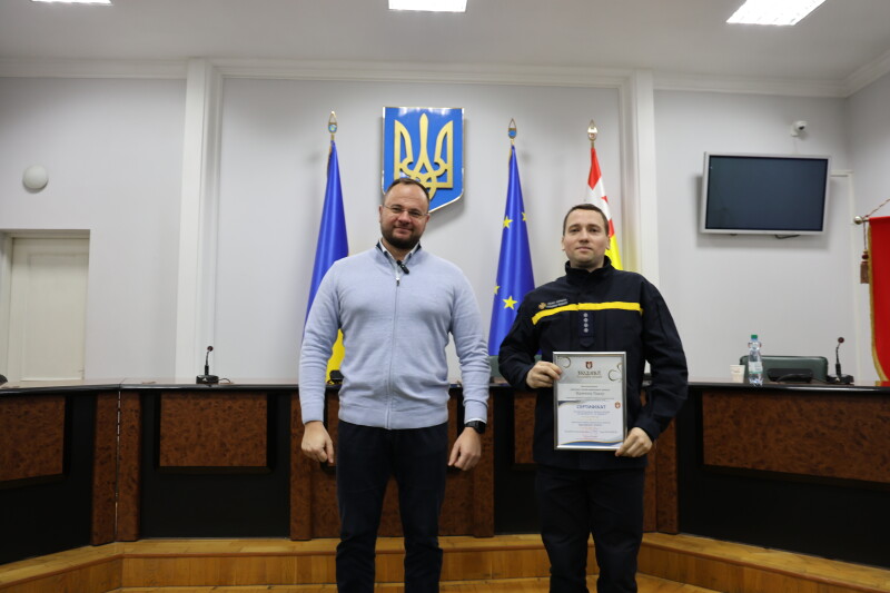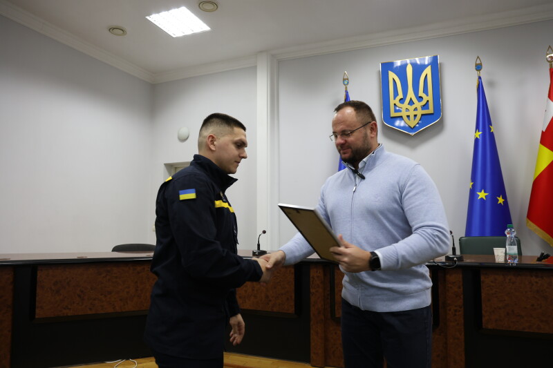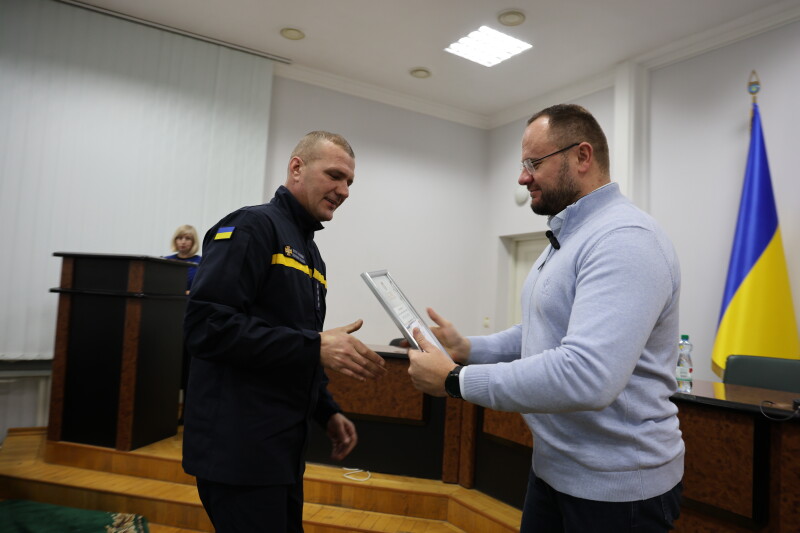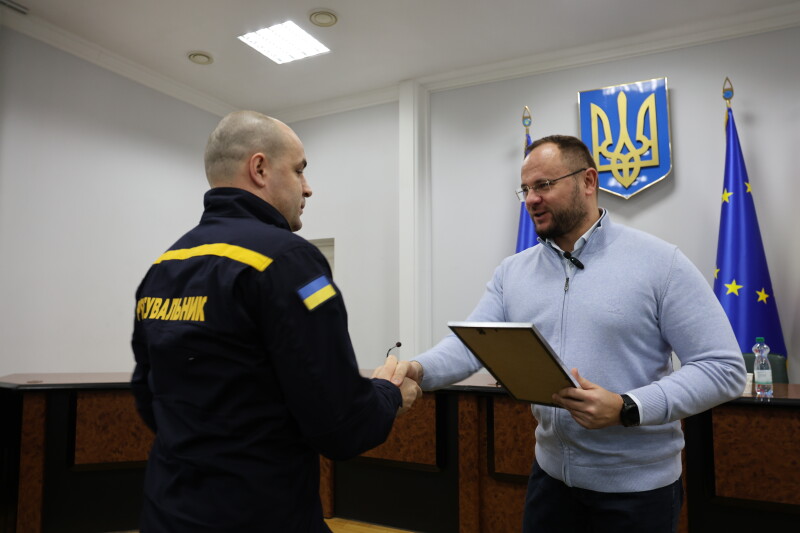 Міський голова вручив рятувальникам, які ліквідовували пожежу внаслідок ворожого обстрілу, подяки та грошові сертифікати