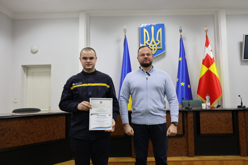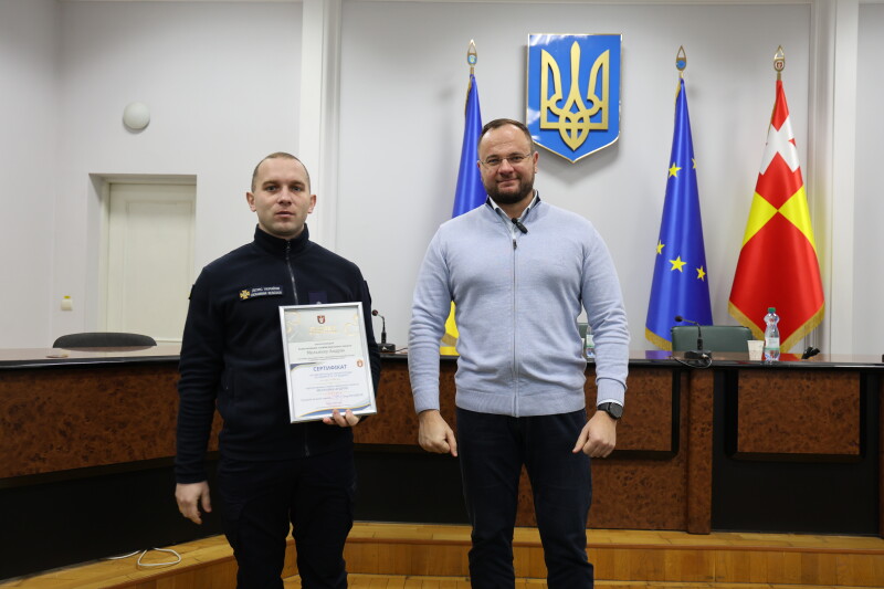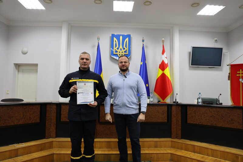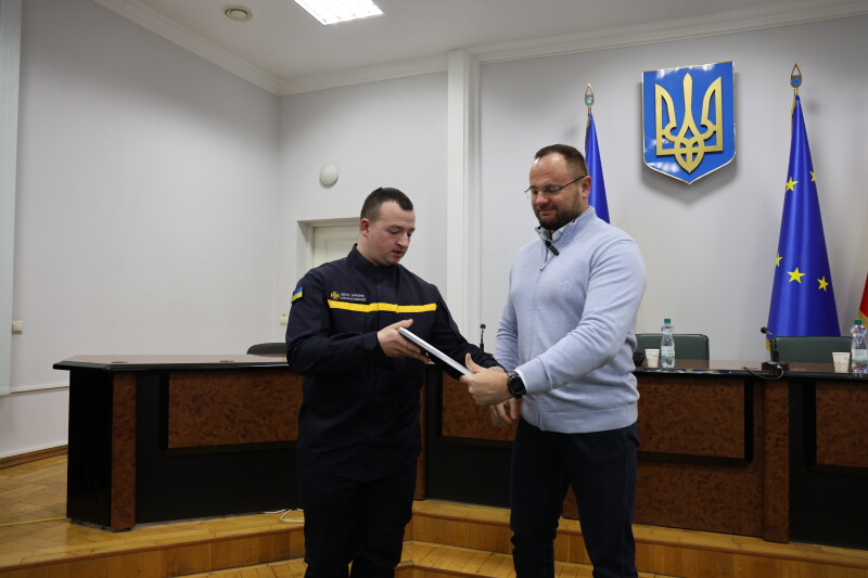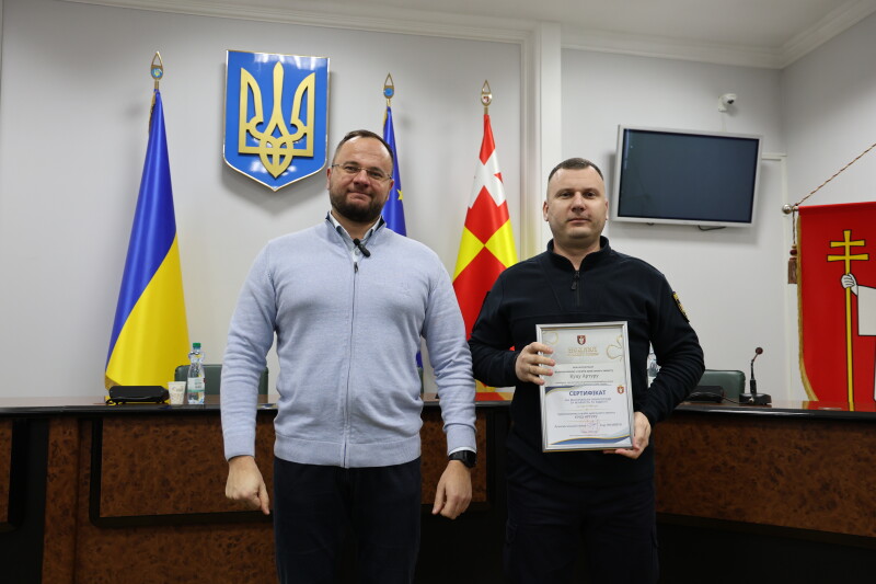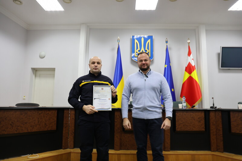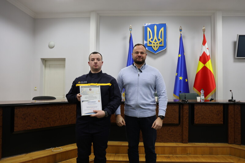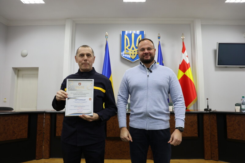 Міський голова вручив рятувальникам, які ліквідовували пожежу внаслідок ворожого обстрілу, подяки та грошові сертифікати