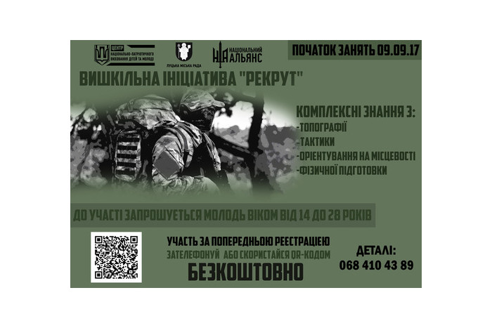 9 вересня 2017 року в м.Луцьк відбудеться презентація та перше заняття вишкільної ініціативи «Рекрут». Метою створення даної ініціативи є необхідність надання комплексної військової підготовки молоді та популяризація військової справи серед населення.