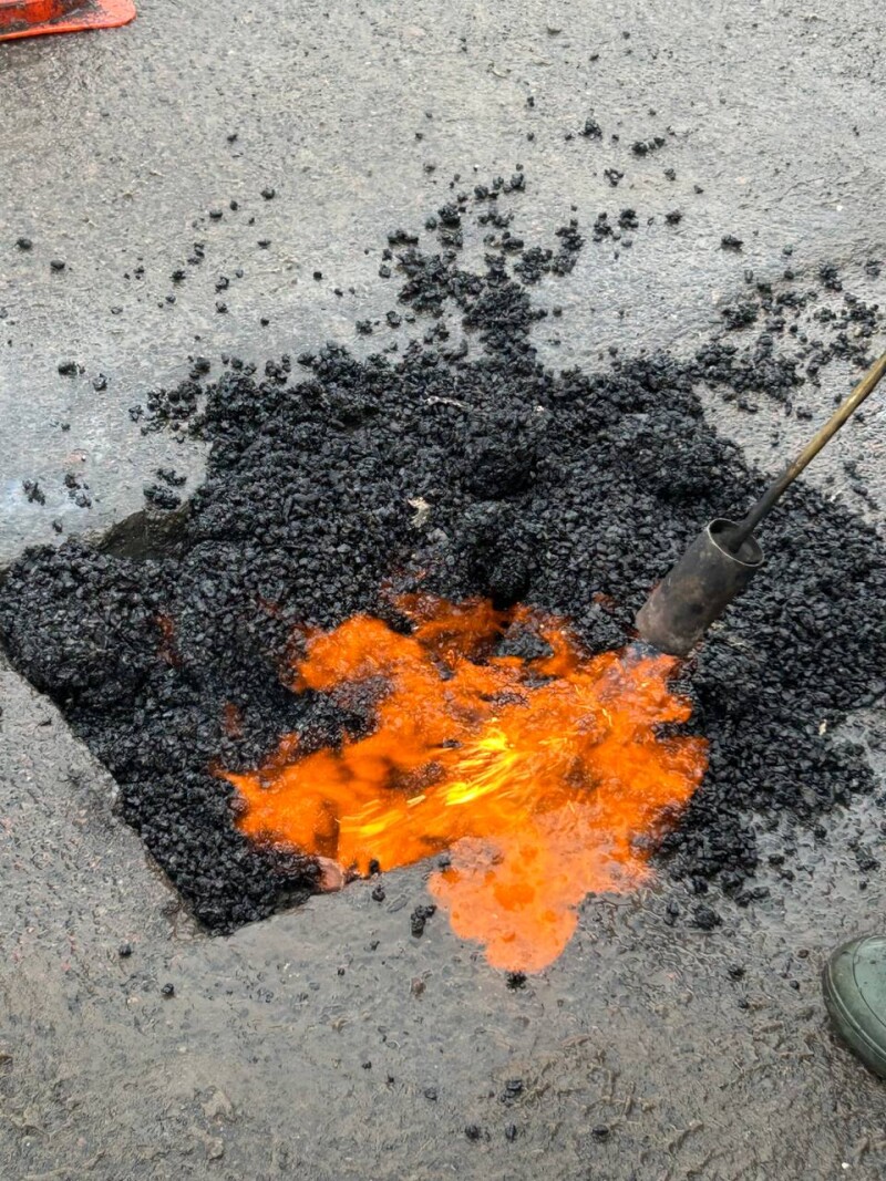 Роботи з використанням технології ямкового ремонту асфальтобетонних покриттів з використанням холодних асфальтобетонних сумішей проводять працівники ТзОВ “Луцькавтодор-сервіс”. Такий ремонт можна робити при температурі повітря від +5 до - 10 градусів за Цельсієм.