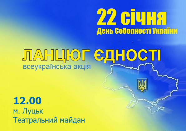 Депутат Луцької міської ради повідомив, що в неділю, 22 січня 2012 року, на Театральному майдані лучани утворять ланцюг єдності з нагоди проголошення Акту Соборності українських земель.