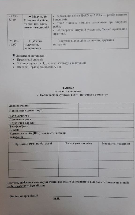 ПП «Центр публічних закупівель «ТЕНДЕР-ЕКСПЕРТ» запрошує взяти участь у навчанні на тему: «Особливості закупівель робіт і поточного ремонту»