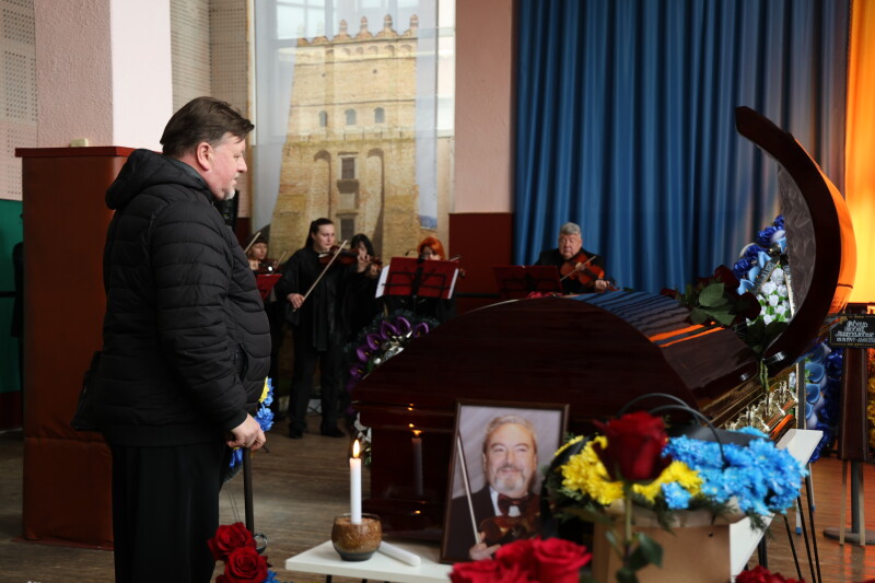 Церемонія прощання з митцем відбулась у Волинській обласній філармонії, де впродовж 32 років він працював художнім керівником та диригентом Академічного камерного оркестру “Кантабіле”.