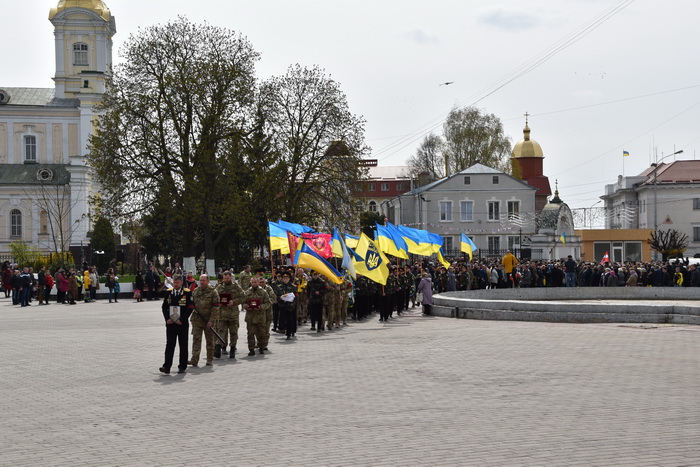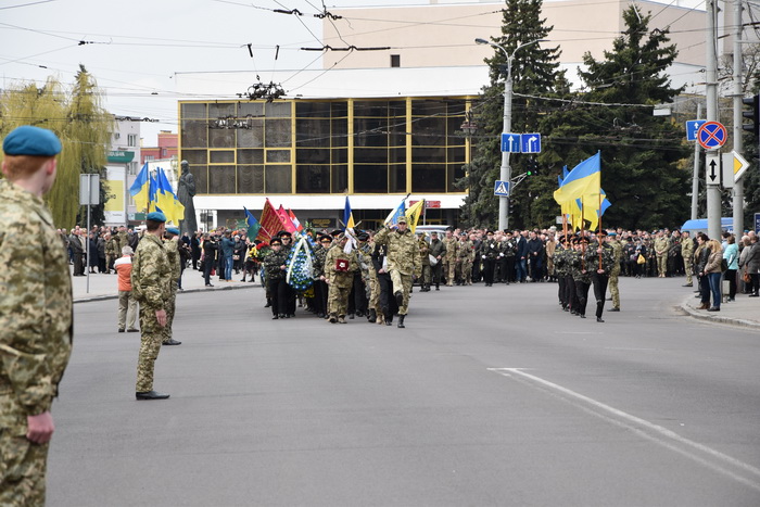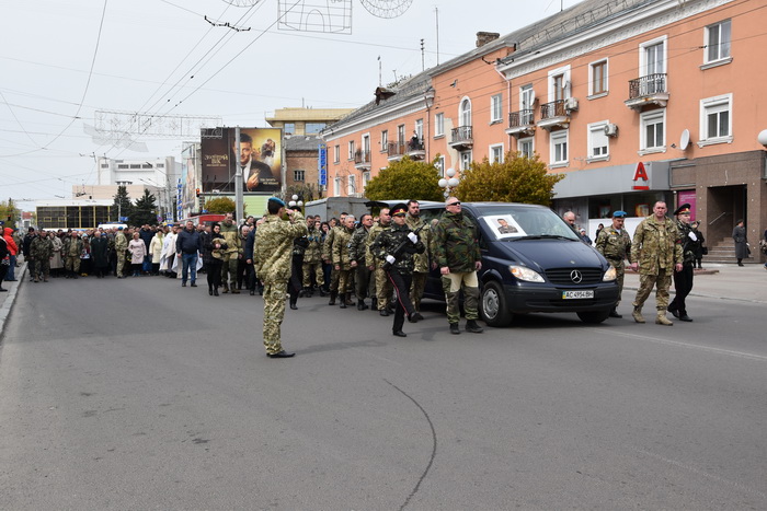 Потому від Театрального майдану через проспект Волі рушила скорботна процесія до гімназії № 4 імені Модеста Левицького, звідки тіло загиблого відвезли на міське кладовище у селі Гаразджа, де поховали на Алеї почесних поховань.