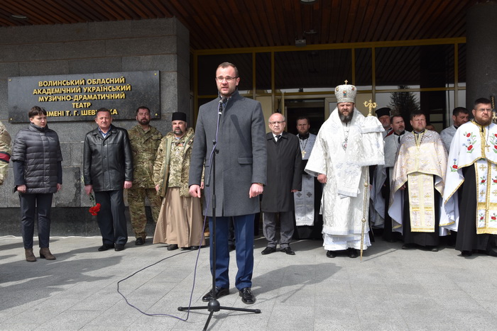 Потому на Театральному майдані відбулася громадянська панахида за участі секретаря Луцької міської ради, виконувача повноважень міського голови Ігоря Поліщука, голови Волинської обласної ради Ігоря Палиці, голови Волинської облдержадміністрації Володимира Гунчика, народного депутата України Надії Савченко, родини, бойових побратимів та сотень небайдужих лучан.