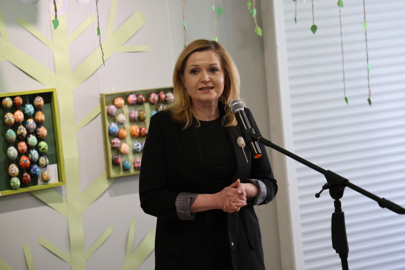 «Багато років поспіль я маю нагоду вітати вас із особливим святом — відкриттям виставки-конкурсу. І щоразу, переступаючи поріг художньої школи, відчуваю тут позитивні емоції, черпаю енергію у ваших роботах та виставках.Ваші діти надзвичайно обдаровані. Не кожен з нас, дорослих, може вивести настільки чіткі лінії чи створити такі оригінальні композиції. І я вдячна вам, викладачі, за роботу з дітьми. Нехай свято Великодня, яке ми будемо відзначати незабаром, принесе вам віру, надію, любов, а у ваших душах нехай ніколи не згасає вогник творчості», - сказала Ірина Чебелюк.
