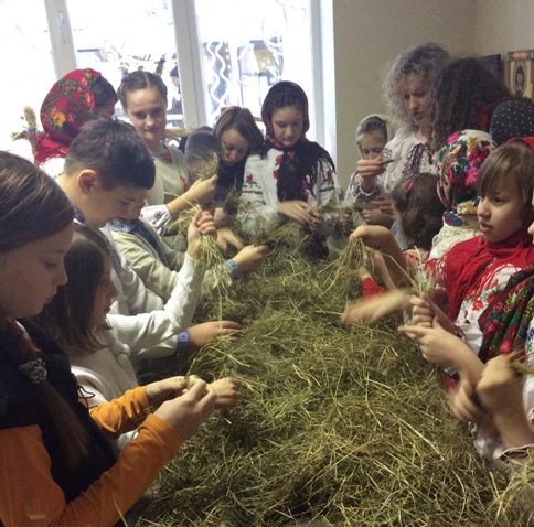 Наколядувавшись, приступили до виготовлення різдвяних янголів. Майстриня Наталка Довгалюк нагадала історію народження Ісуса Христа в сіні та вправно презентувала техніку роботи з сіном та виготовлення оберегів. Кожен з присутніх власноруч, правда при допомозі майстрині, створив різдвяних оберіг для своєї родини.