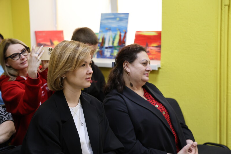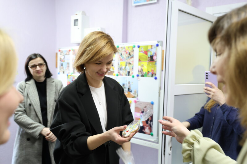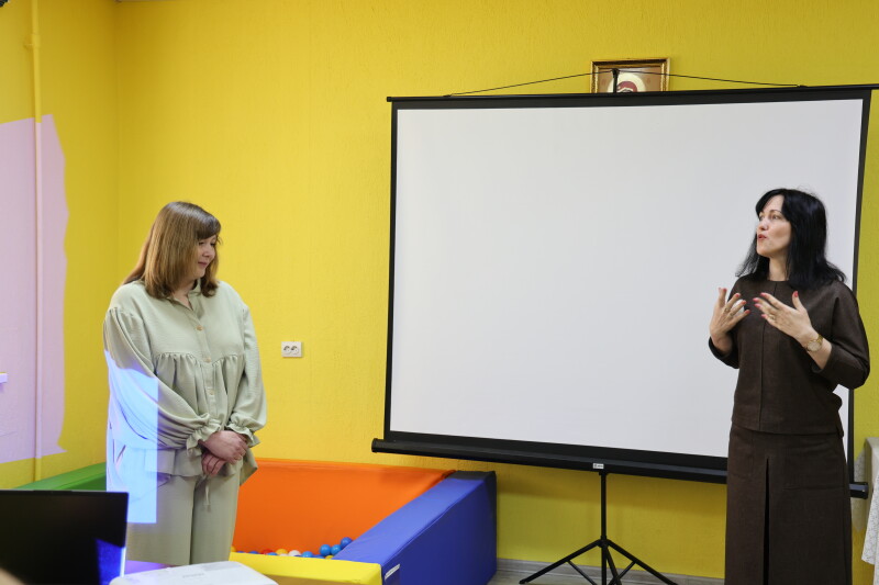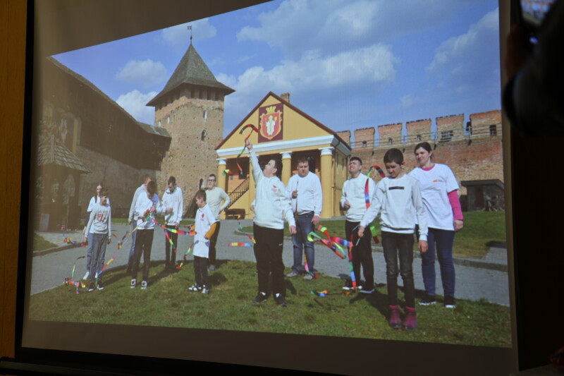 Було презентовано досягнення проєкту денного догляду за дітьми з інвалідністю підгрупи А. Гості ознайомилися з роботою центру, переглянули зразки арт-терапії, створені вихованцями, а також дізналися про інші здобутки дітей, які відвідують Центр.