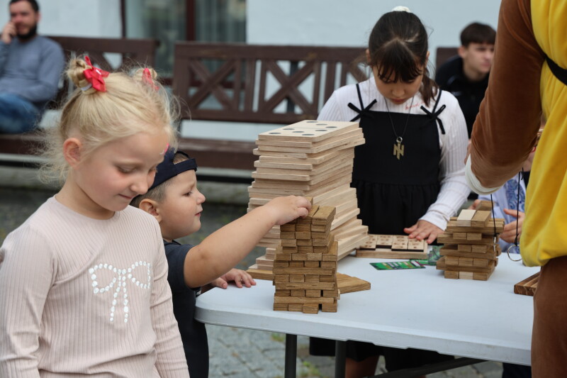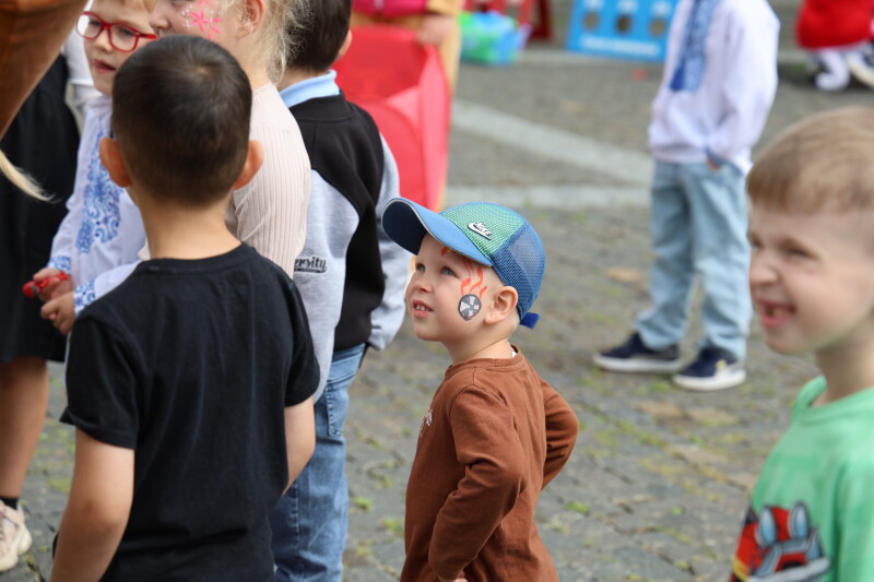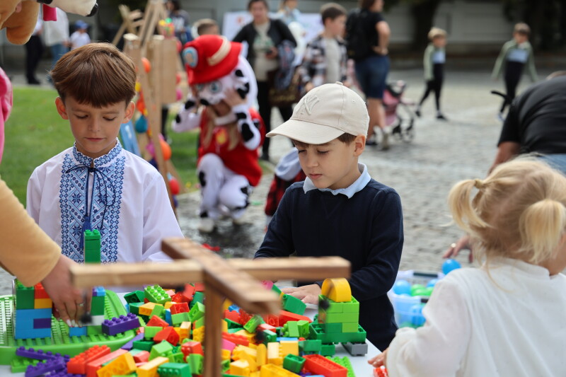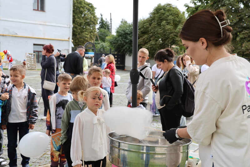 Для діток сьогодні організували цікаву розважальну програму з аніматорами, конкурсами, ласощами та подарунками.