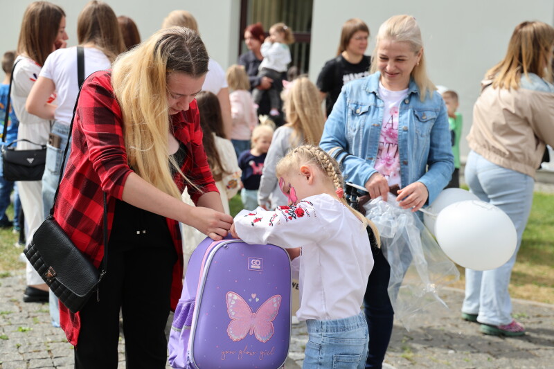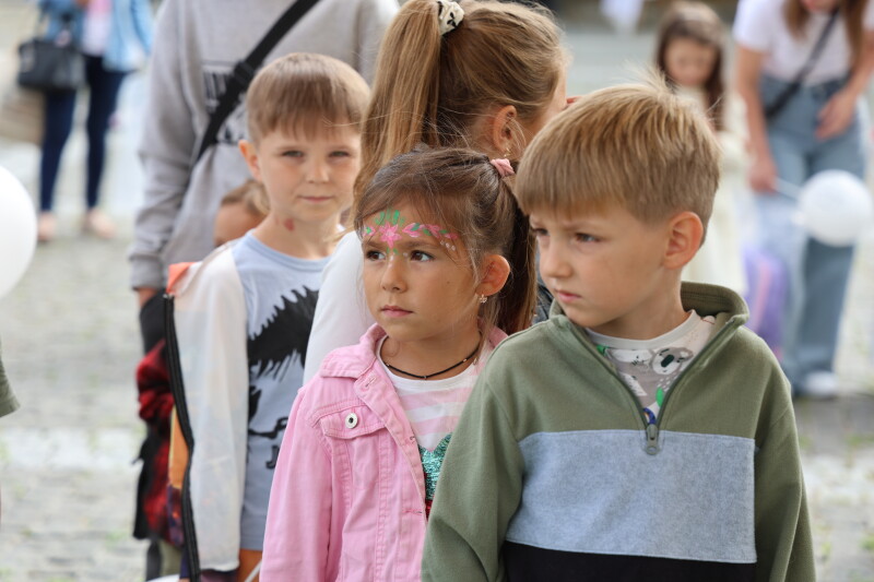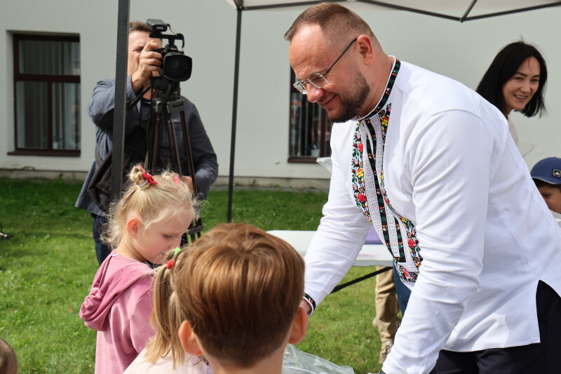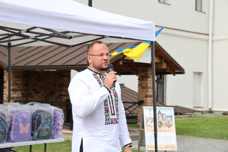 Вручити шкільні ранці та привітати дітей з новим важливим етапом у їхньому житті прийшов міський голова Ігор Поліщук. «Шановні дорослі, дорогі діти, я вітаю вас зі святом — Днем Державного Прапора та святом, яке відзначатимемо завтра — Днем Незалежності України. В ці дні ми згадуємо усі покоління українців, які боролися за нашу свободу, йшли під синьо-жовтим стягом до Української державності та віддавали свої життя. Я дякую усім захисникам та захисницям, які дають можливість нам жити тут відносно мирне життя, а діткам іти до першого класу. Дітки, ці рюкзачки, які ми вам вручаємо — це подарунок, який символізує нашу гідність та любов. Бажаю, щоб ваше навчання в школі було цікавим, щоб ви отримали ті знання, які допоможуть вам стати успішними у майбутньому. Бажаю, щоб ви зустріли нових друзів, щоб перше вересня другого вашого класу було вже у мирній успішній процвітаючій Україні», - звернувся до присутніх Ігор Поліщук.