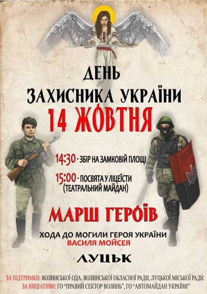 У вівторок, 14 жовтня, у Луцьку на свято Покрови Пречистої Богородиці, у День українського козацтва та у День створення Української Повстанської Армії відбудеться Марш Героїв центральними вулицями міста.