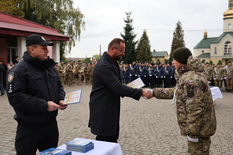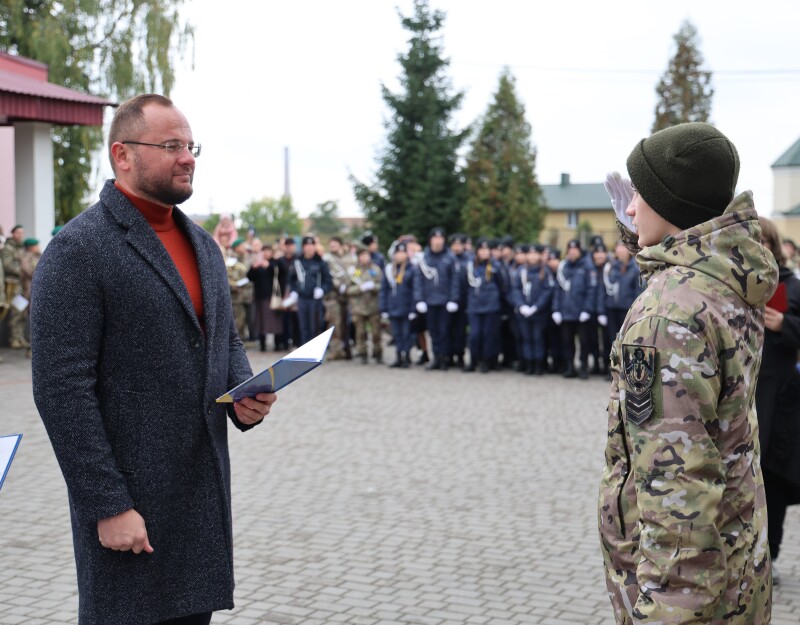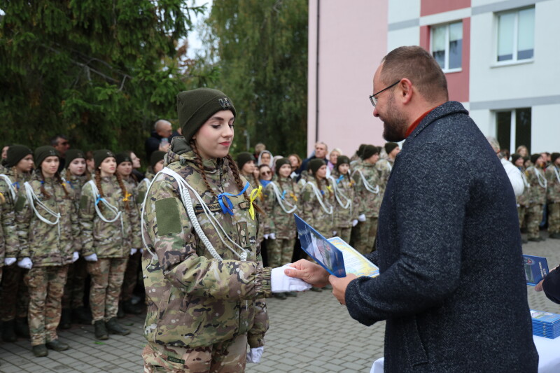 Найкращі учні урочисто винесли прапор ліцею. Після цього ліцеїстам були вручені академічні книжки – аналоги шкільного щоденника, що використовуються для записів про академічну успішність та планування роботи. Для ліцеїстів вони будуть нагадуванням про початок військового навчання.