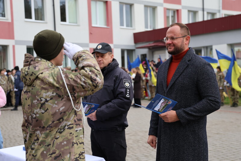 «Дякую, щонайперше, Збройним силам України за те, що в нашому місті можуть діти навчатися, і сьогодні ми можемо провести цей день у відносно мирній атмосфері, а не так, як, на превеликий жаль, у багатьох інших містах на сході та на півдні України. Дорогі ліцеїсти, ви сьогодні вступаєте в дуже важливий період вашого життя. Він певною мірою є визначальний для вашого майбутнього. Використайте його ефективно, щоб ви здобули ті знання, вміння та навички, які допоможуть вам в майбутньому стати успішними. Навчайтеся дисципліни — це те, що допоможе досягти успіху! Дякую батькам, що мотивували обрати саме цей навчальний заклад, вдячність усьому педагогічному колективу. Наш ліцей має за основу національно-патріотичне виховання. Сьогодні, ми, на жаль, переконалися, що немає важливішої професії, як захист України. Тож нехай ваші навчальні роки пройдуть успішно, нових вражень, друзів та знайомств! Усім нам — міцного здоров'я, добра, злагоди, якомога швидшого міцного переможного миру!»,— зазначив міський голова Ігор Поліщук.