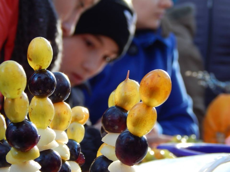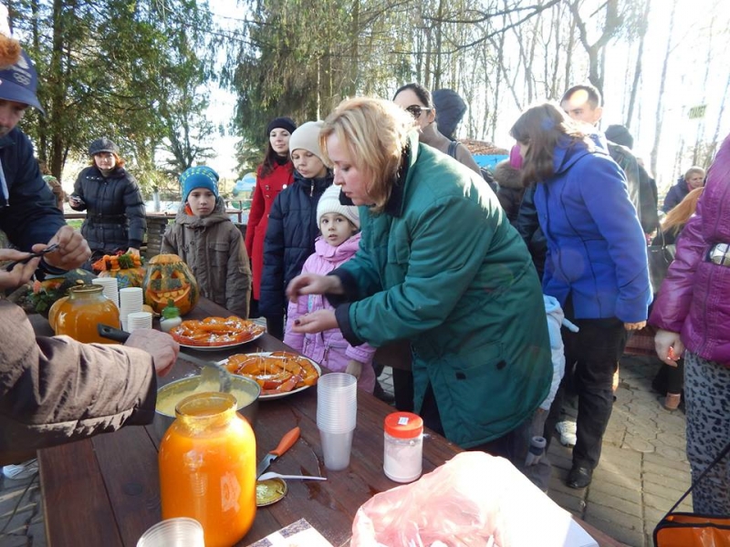 Були розповіді про історію гарбуза та його користь і дегустація страв з нього: відвідувачів пригощали печеним гарбузом, кашою та гарбузовим соком. А зігрівалися запашним трав'яним чаєм, звареним на вогні.