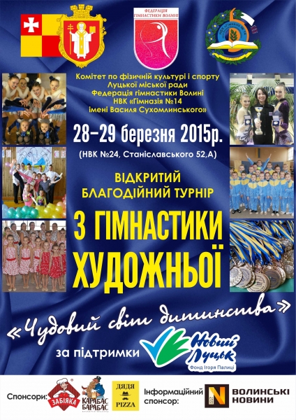 28-29 березня 2015 року в спортивному залі НВК №24 (вул. Станіславського, 52 А) відбудеться відкритий благодійний турнір з гімнастики художньої “Чудовий світ дитинства”.