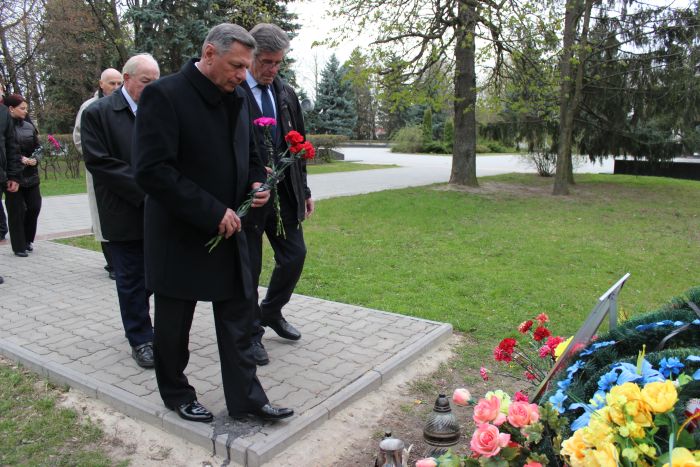 Опісля в знак вшанування загиблих українців, що захищали незалежність та свободу нашої держави під час Революції Гідності, спільно з міським головою Миколою Романюком вони поклали квіти до фотостенду Героїв Майдану та біля могили Василя Мойсея.