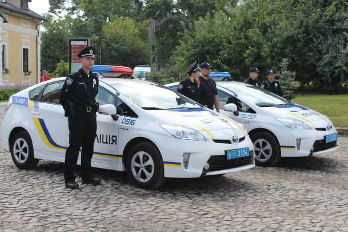 Потому присутні підійшли до двох автомобілів “Тойота Пріус” нової патрульної поліції Києва та оглянули їх.
