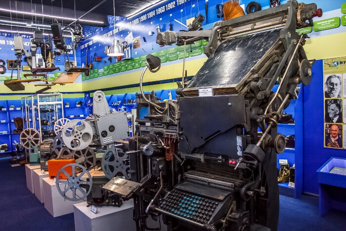 На момент відкриття в експозиції музею нараховується понад 1500 експонатів, які демонструють найвагоміші віхи історії винаходів людства. Усю колекцію розділено на кілька модулів, де представлені реальні експонати технічного прогресу. Зокрема, експозиції фото- та кінотехніки, телебачення, зв'язку, друку, а також звукові транслятори, оптика, ЕОМ та інша техніка.
