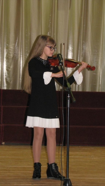 Тематичну концерту програму підготували учні та викладачі школи. Пісню «Україна – це ти» виконали учасники фольклорного ансамблю «Зоряниця» (керівник Олена Богдан), «Ми маленькі козачата» переконливо заспівали Денисенко Денис та Ромасєв Дмитро (викладач Наталія Гончарук). Звучали пісні у виконанні Валентини Наконечної (викладач Ірина Марчук) та дуету бандуристок у складі Лесі Грішанової і Дарини Павленко (викладач Інна Шпіндовська). Олена Богдан та Устина Федотова проникливо виконали пісню «Мій тато герой». Відомий твір М.Скорика «Мелодія» прозвучав у виконанні Яни Кулик (викладач Оксана Тумакова).