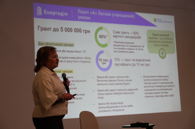 “Дякую, що прагнете вдосконалитись, забезпечити комфортні умови для мешканців, адже багато викликів, які сьогодні стоять, пов’язані з війною і є багато речей, на які ми не можемо вплинути, але попри це ми шукаємо шляхи, застосовуємо нові технології і стаємо прогресивнішими. Цей захід – про підтримку, допомогу, нову інформацію в сфері енергоефективності. Сподіваюсь, сьогодні ви почерпнете ту інформацію, яка допоможе реалізувати у нашому місті низку проєктів”, – зазначила заступник міського голови.