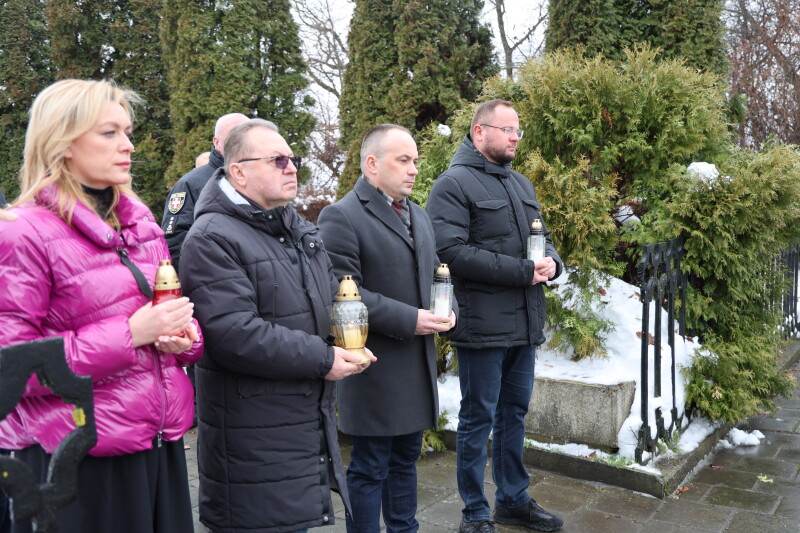 Схилити голови та вшанувати пам’ять жертв Голокосту прийшли Луцький міський голова Ігор Поліщук, т.в.о. голови Волинської обласної військової адміністрації Роман Романюк, заступник голови обласної ради Григорій Пустовіт та голова Луцької районної ради Тетяна Павлова-Багрійчук.