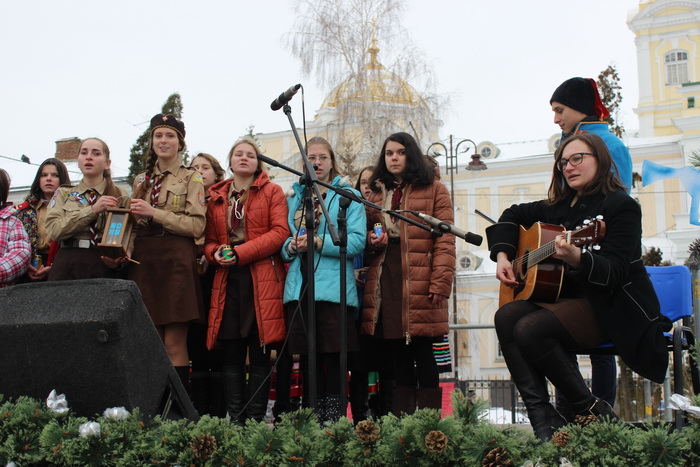 Потому на Театральний майдан члени обласної організації “Пласт” внесли Віфлеємський вогонь та запалили громадську свічу, яку виготовили представники братства бджолярів Волині “Ройовий стан”.