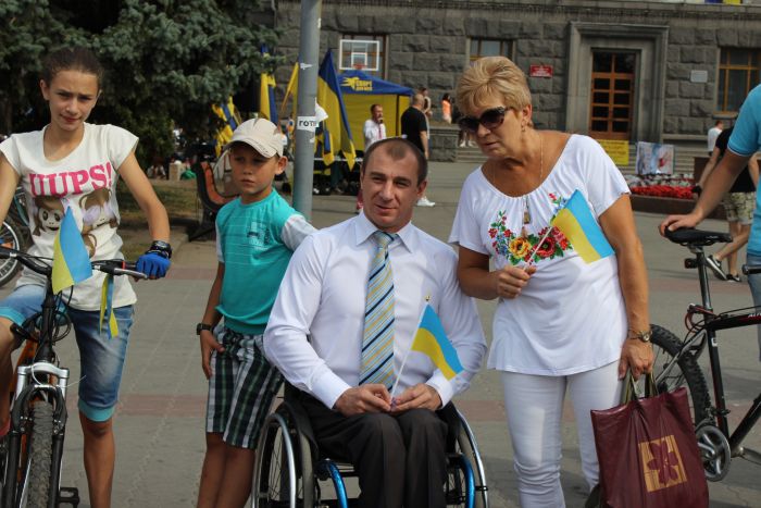 Міський голова подякував усім, хто прибув з велосипедом у центр міста, особливо теплі слова висловив учасникам інвалідного спорту. Подякував їм за силу духу, за те, що вони є прикладом для інших у своїй життєвій позиції. Микола Романюк привітав усіх з Днем Державного Прапора та 24-ю річницю Незалежності України, 930-річчям Луцька, побажав мирного неба, щоб Україна була такою, якою ми її хочемо бачити. Спортсменам-інвалідам вручив пам’ятні сувеніри.