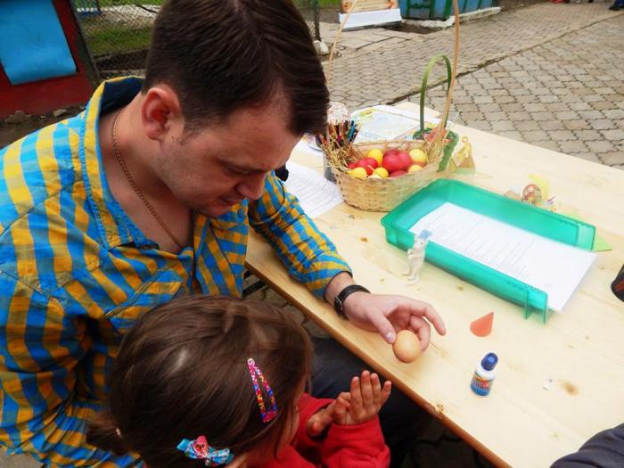 Разом із дітками майстрували з яєць, вати та кольорового паперу кумедних чоловічків, розмальовували великодні листівки. А для непосидючої малечі влаштували ігри та забави.