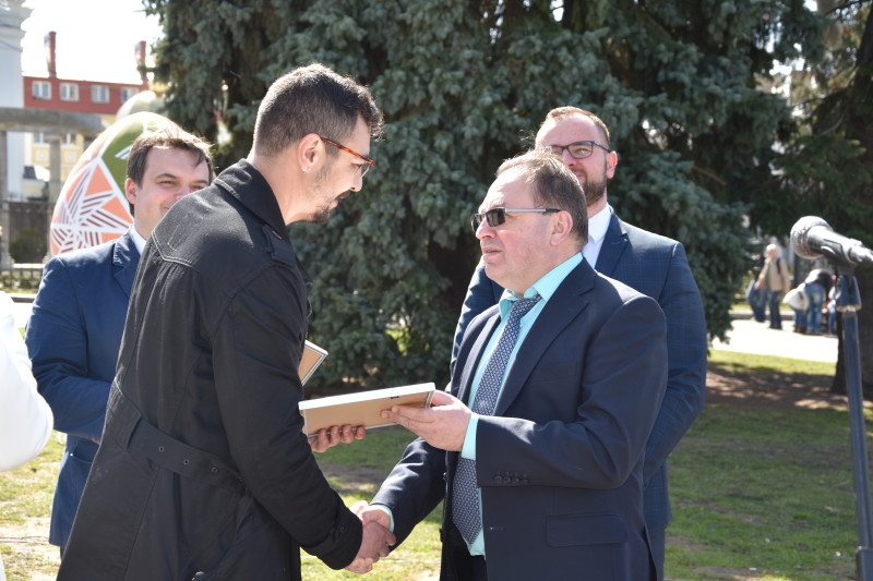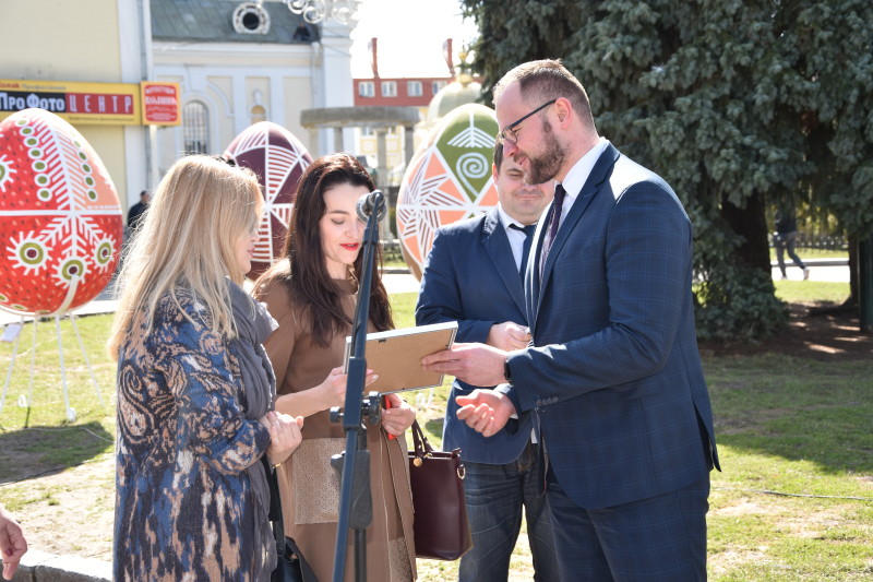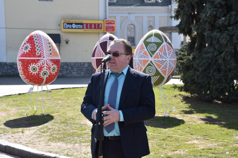 Привітавши гостей та учасників арт-проекту, Григорій Пустовіт подякував усім митцям та художникам, які сьогодні презентують свої роботи. “Дякую усім, хто творить та дарує нам свято. Ці арт-об'єкти спонукають нас замислитись над тим, яке важливе значення мають великодні символи, найголовнішим з яких є українська писанка. Традиція прикрашати писанки передається із покоління у покоління. Із плином часу з’являються нові, креативні та сучасні арт-об’єкти. Та вони не втратили своєї історичної самобутності. Надзвичайно приємно, що прикрашання писанок активно долучається діти та молодь, аби засвідчити свою національну приналежність за допомогою власного таланту. Сподіваюся, що цей проект стане справжньою окрасою свята у нашому місті”, - сказав Григорій Пустовіт.