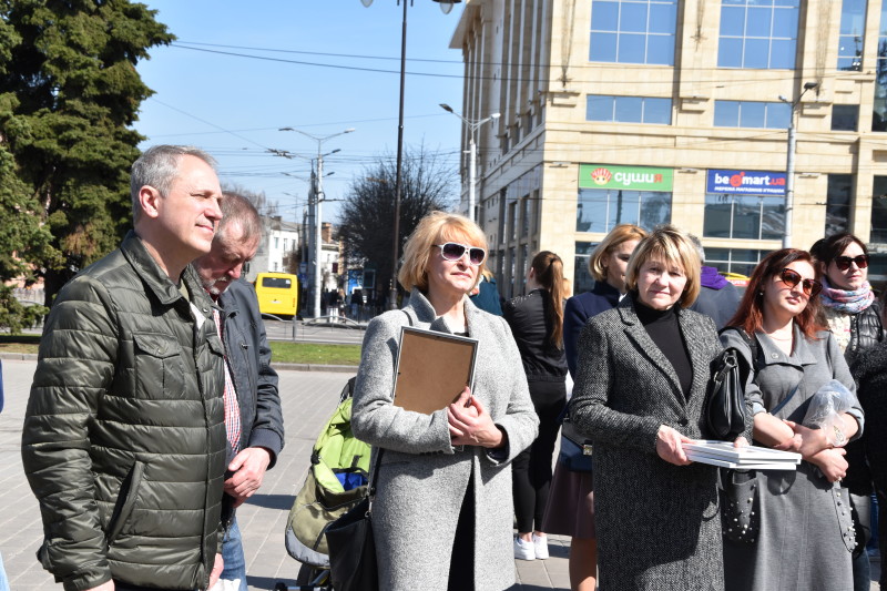 Відкриття святкової композиції відбулося за участі виконувача повноважень міського голови, секретаря міської ради Григорія Пустовіта, радника міського голови Ігоря Поліщука, директора департаменту культури Тетяни Гнатів, мистецтвознавців, учнів та педагогів загальноосвітніх навчальних закладів.