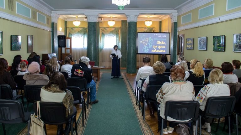 Захід «Мова єднає покоління» відбувся у Палаці культури міста Луцька, що став простором зустрічі поколінь об‘єднаних у любові до українського слова та спільних цінностей. Захід провела поетеса, авторка й виконавиця власних пісень Світлана Кресак, яка подарувала присутнім щиру поезію та музичні композиції, сповнені любові до українського слова. До заходу долучилися членкині ГО «Союз українок». З теплими словами до присутніх звернулася відома громадська діячка, засновниця та багаторічна очільниця цієї організації Любов Ганейчук, яка акцентувала, що рідна мова є нашою духовною опорою, саме мова допомагає зберігати національну ідентичність. Яскраві творчі виступи подарували учасниці гуртка «Мистецтво слова» ПУМ Дар’я Кособуцька, Ілларія Сінкевич та Вероніка Карасюк (керівник Світлана Кресак), вокальної студії «MusLi» Поліна Чубарова та Софія Рацька.