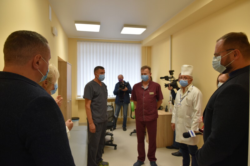 “Колись тут був дуже вузький коридор, не було палат та обладнання, а також можливостей якісно й ефективно працювати з пацієнтами. Це було незручно усім, - пригадує міський голова. - Сьогодні тут є зелений та червоний коридори для тих, хто потребує термінової госпіталізації і тих, хто планово поступає в лікарню. Є повний комплект необхідного сучасного обладнання: комп’ютерний томограф, рентген апарат, апарат ультразвукової діагностики, палата інтенсивної терапії з апаратами штучної вентиляції легень, діагностична лабораторія, а також інфекційний блок. Відтепер лікарі безпосередньо у приймальному відділенні мають змогу надати усю допомогу пацієнтам, а не возити їх відділеннями лікарні. Також є кімната для тих, хто підозрюється у скоєні злочину”.