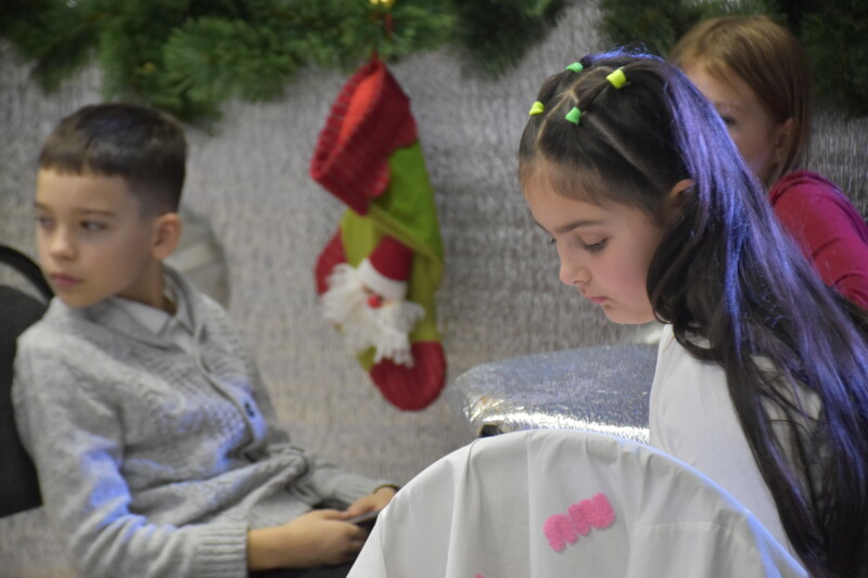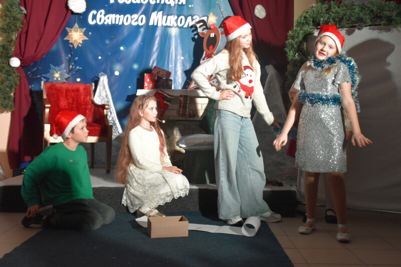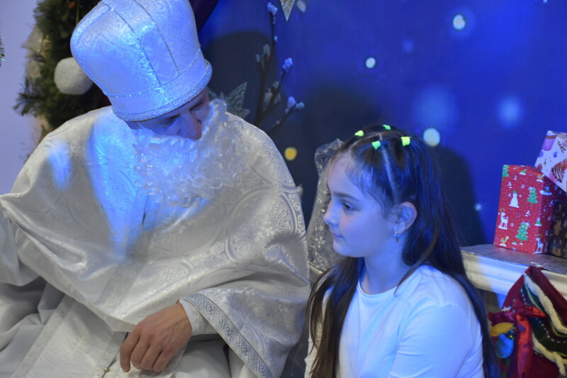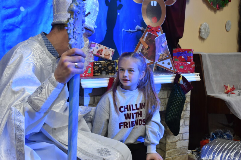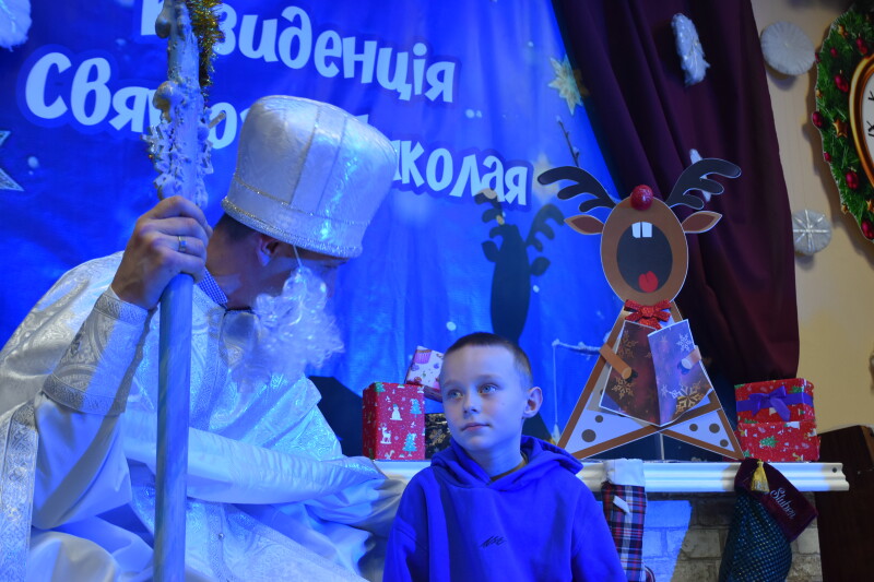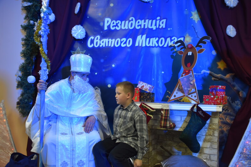 І ось настала довгоочікувана мить – зустріч зі Святим Миколаєм. Діти мали можливість досхочу поговорити з ним, сидячи біля каміна. Школярі розповідали про свої мрії та добрі справи: як навчалися нового, допомагали родині, підтримували друзів. Після розмови поверталися з чималим пакунком солодощів.