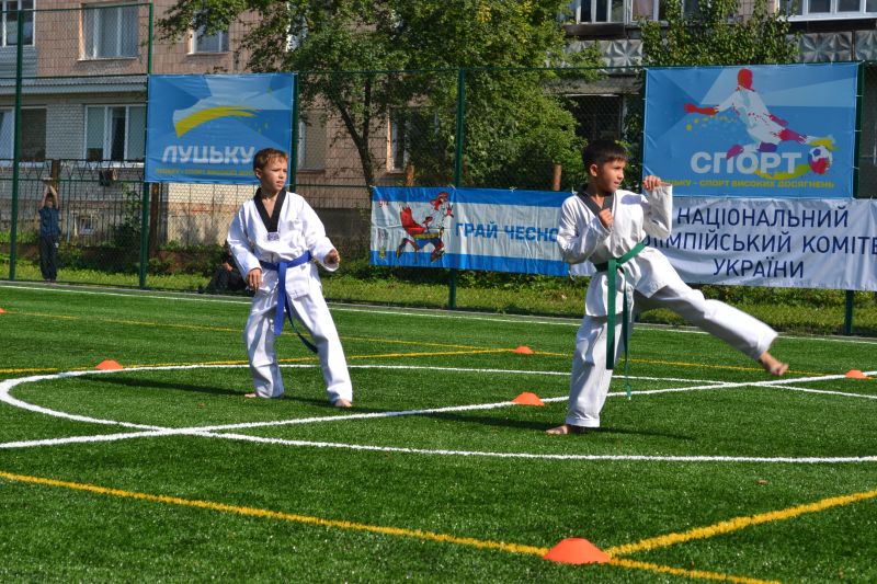 По тому, на майданчику завирували спортивні змагання, які чергувалися з показовими виступами юних боксерів, гімнастів дитячо-юнацької спортивної школи № 2 і вихованців клубу Тхеквон ДО ВТФ «Білий лев».