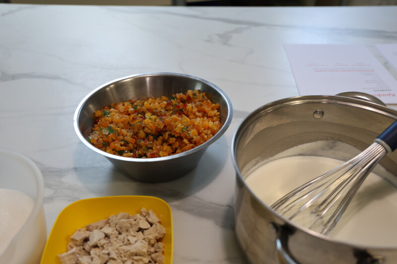 Учасниці майстер-класу випікали три види пасок - традиційну, але осучаснену версію паски - апельсинову, сирну, а також крафіни з різними начинками.