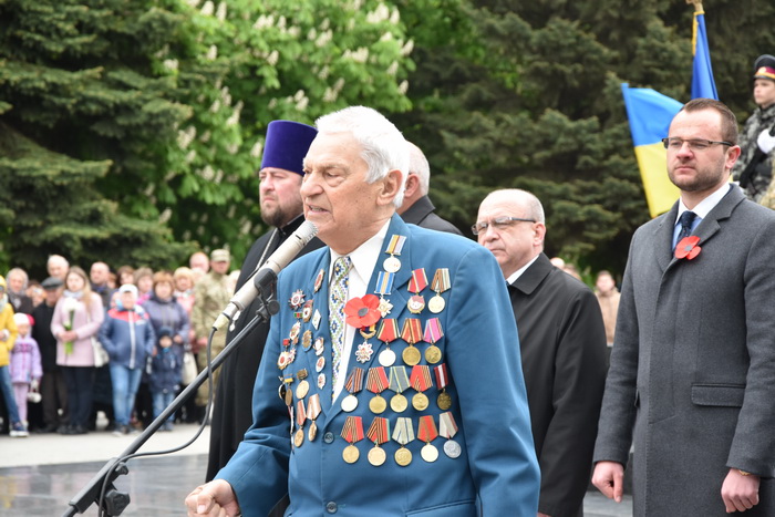 Нині ми схиляємо голови перед пам’яттю тих, хто загинув на полях битв і в нацистських концтаборах, перед пам'яттю учасників національно-визвольного руху, які боролись за українську державність. Всі ми в неоплатному боргу перед полеглими у справедливій боротьбі за свободу і гідність людини.