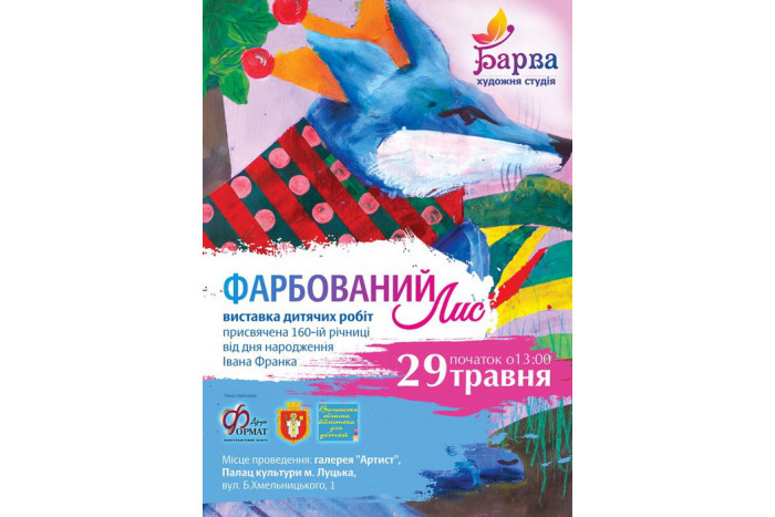 29 травня о 13.00 год. приміщенні Палацу культури міста Луцька (галерея «Артист») відбудеться відкриття виставки образотворчого мистецтва «Фарбований лис», присвяченої 160-й річниці від дня народження Івана Франка.