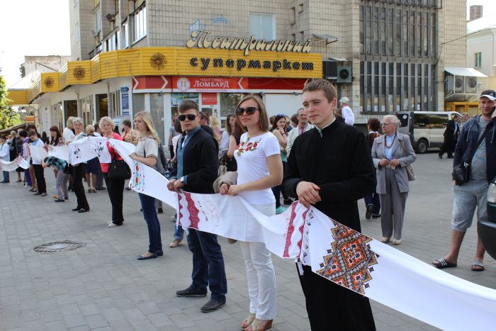З вишитих рушників у Луцьку виклали слово «Мир»